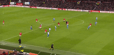 第12分钟,维尔贝克左侧下底传中,鲁特尔头球被挡出,格鲁达补射破门。布莱顿1-0领先曼联。