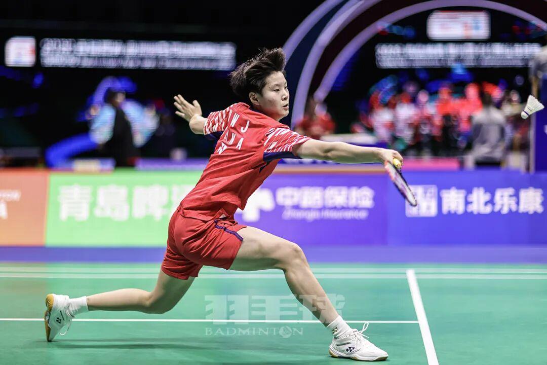 第二单打徐文婧随后上场,对手是和自己同龄但从未交手的拉克希塔。徐文婧上场时略显被动和不适应,以14比21先丢一局。她及时调整,在后两局保持领先并顶住对方的追分压力,以21比15、21比17逆转获胜,打入四强,明天将与中国台北队争夺决赛席位。